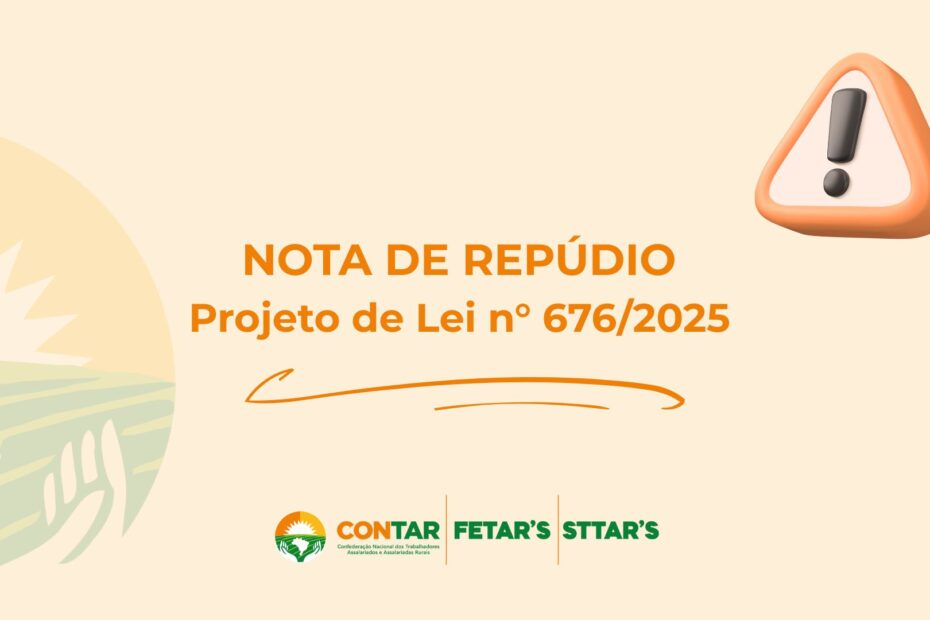 A Confederação Nacional dos Trabalhadores Assalariados e Assalariadas Rurais (CONTAR), entidade sindical de grau superior representante dos 4 milhões de empregados (as) rurais brasileiros, vem… Continue a ler »Nota de Repúdio I Lei n° 676/2025
